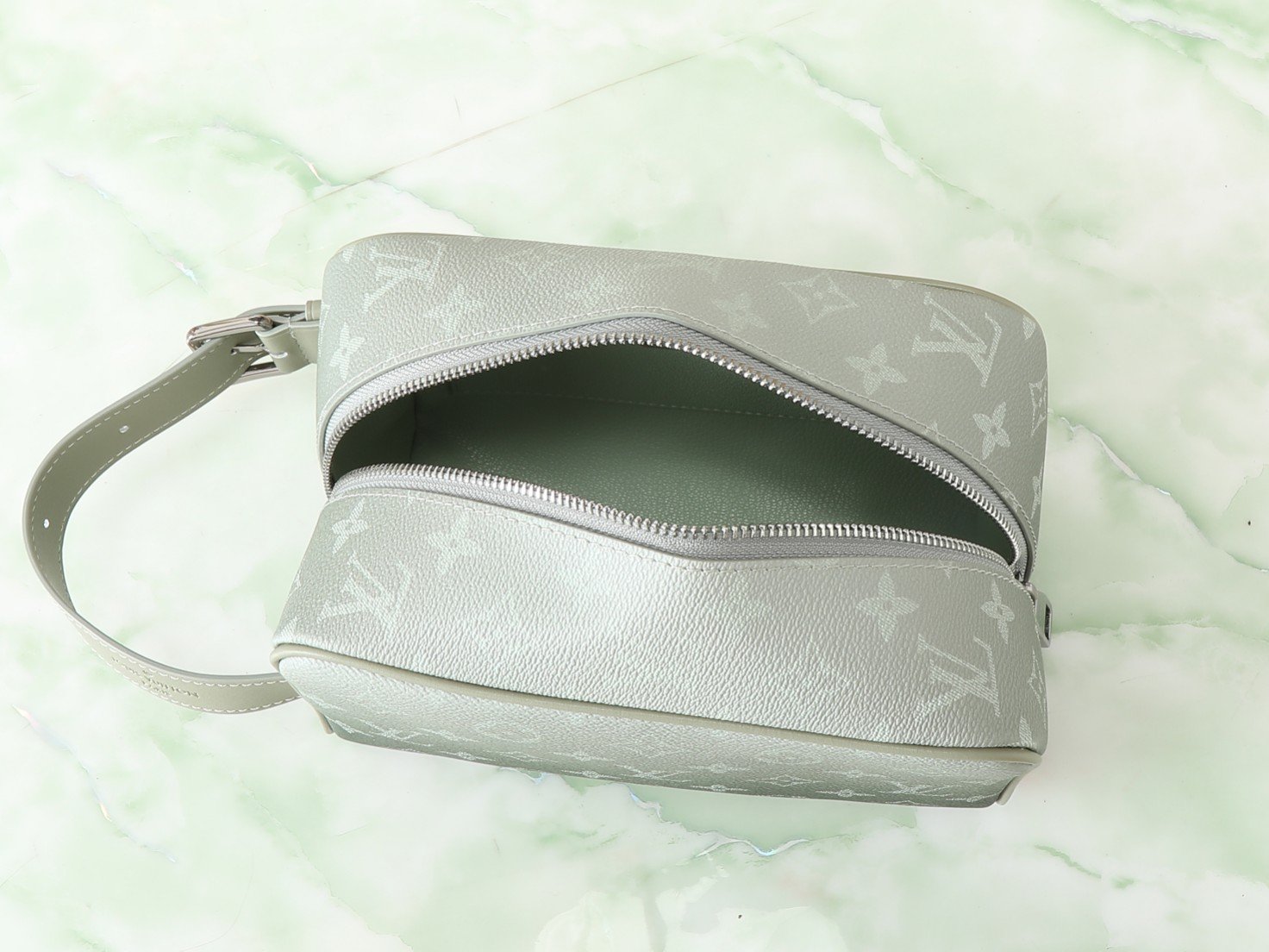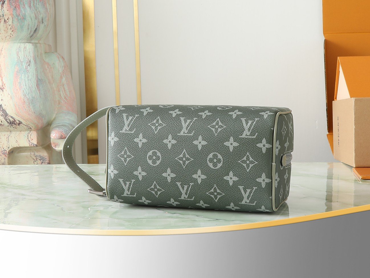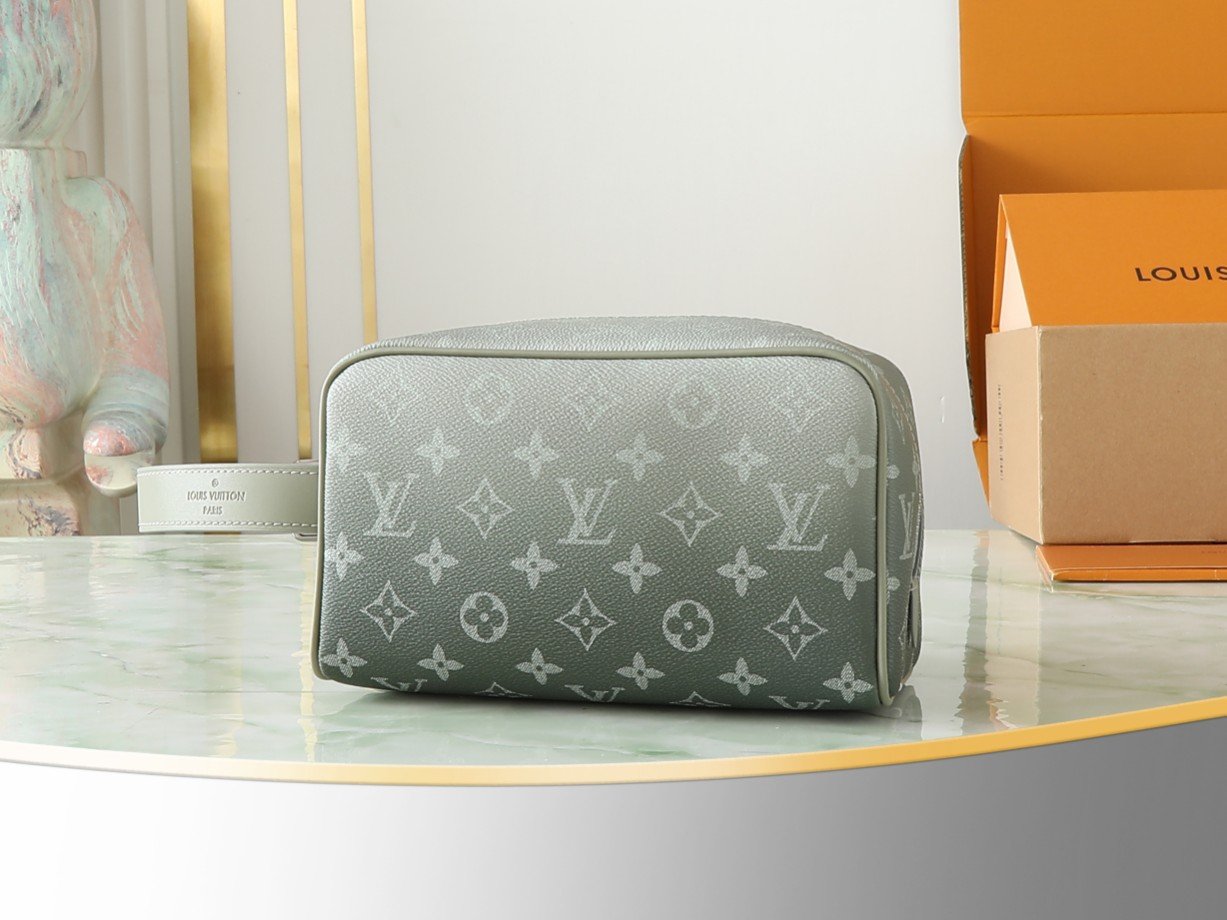 The M11559 green gradient toiletry bag makeup bag series Locker Dopp Kit toiletry bag combines modern fashion style with Louis Vuitton’s iconic elegant style. It is made of the brand’s classic Monogram Eclipse canvas and has multiple practical functions, such as a washable lining and a comfortable adjustable length side handle. The design is compact in size but spacious in capacity, enough to store all essentials. With a stylish design and practical functions, it is definitely a must-have travel companion. 23 x 13 x 12 centimeters.