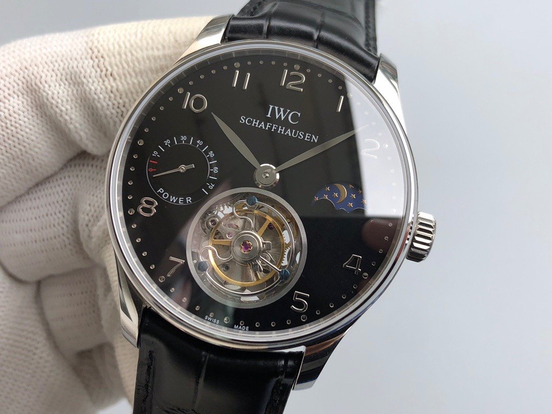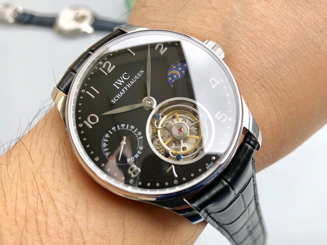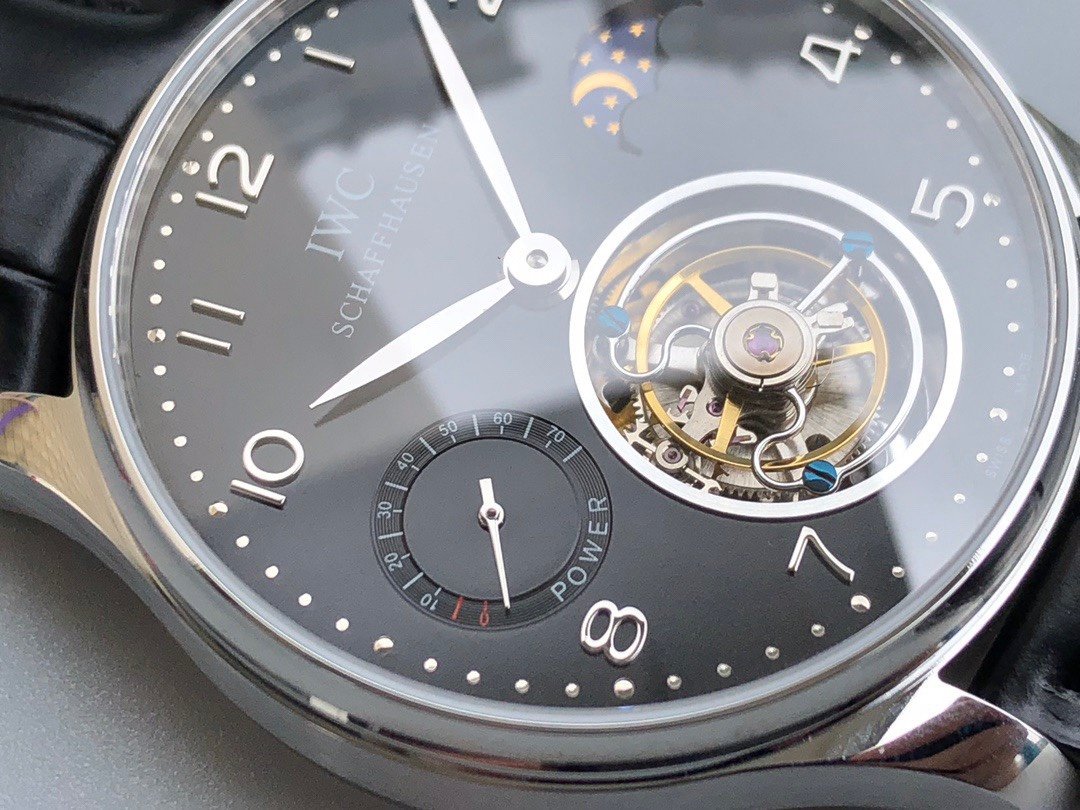 The V2 version of the IWC Tourbillon Portugal Power Sun Moon Star Series true flywheel is equipped with a 72 hour power display and a 24-hour Sun Moon Star top-level manual true flywheel movement. The sapphire crystal glass has a diameter of 42mm and a thickness of 12.5mm