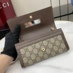 The world of GG Ophidia continues to evolve with the seasons of new shapes and materials. Gucci’s non removable alphabet continues to enrich new designs with its unique logo. This mainland style wallet is made of the historic GG Supreme beige and vinyl fabric, featuring Double G details. Fabric GG Supreme beige and brown leather finish, light gold finish, Moliere Double G interior: 12 card slots, two banknote compartments, a wallet pocket with a padlock, and two flat pockets under the card slots. External: a flat pocket with a detachable chain, height (light) 60cm close button.