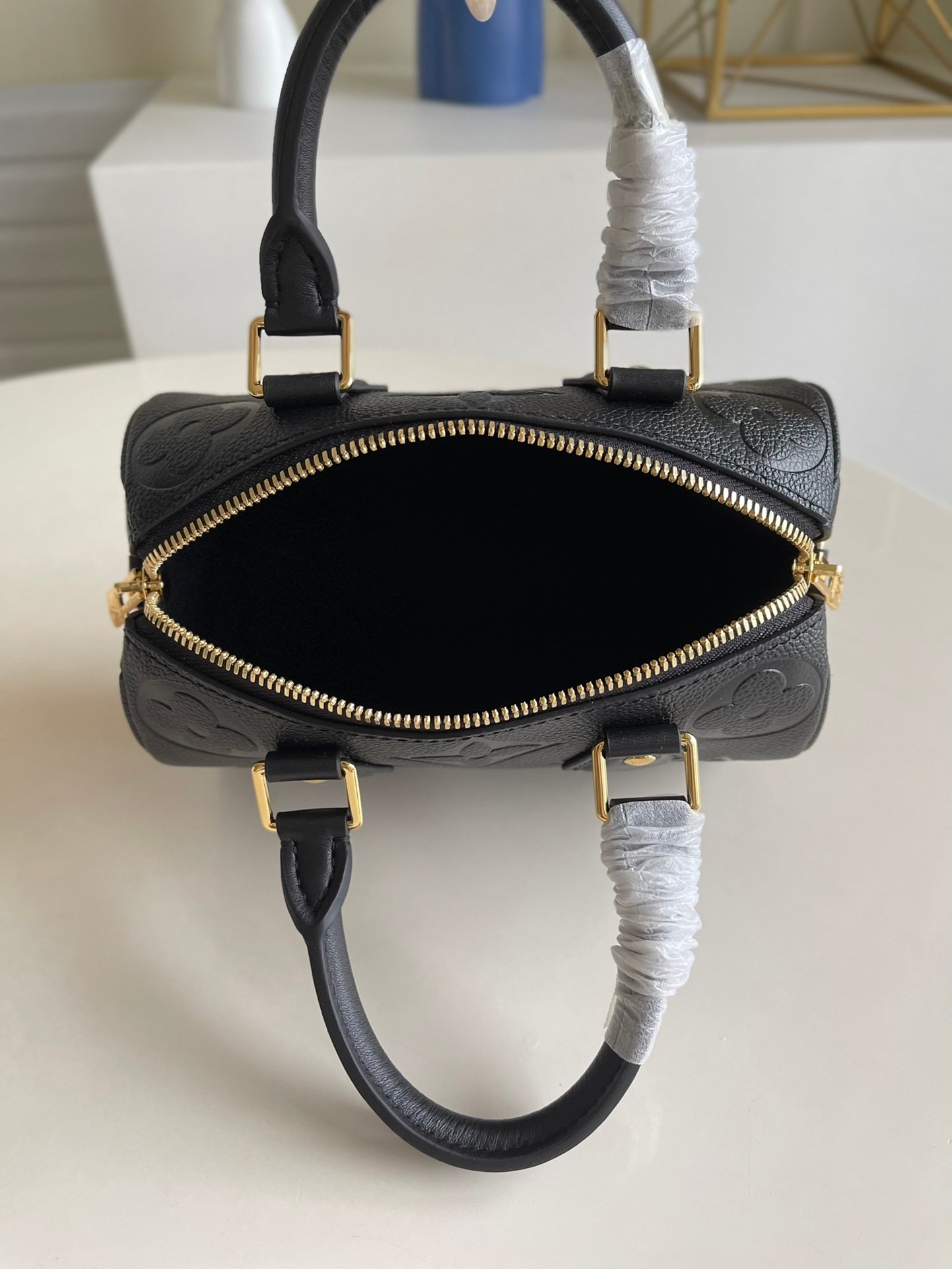 This Speedy Bandouli è re 20 handbag, with its exquisite design and fashionable style, can be carried with daily essentials at will. Made of smooth Monogram Empreinte grain leather, adorned with oversized Monogram embossing, paired with padlocks, metal parts, detachable and adjustable chain shoulder straps, and Toron handles.