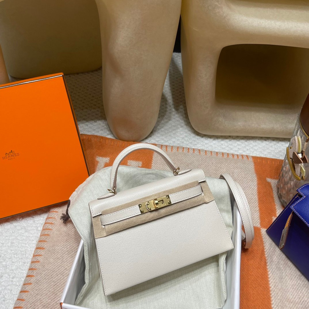 Today’s recommended handmade 19x12x5.5cm The second generation mini Kelly with high aesthetic value, the most popular style for small bags Epsom Skin 10 Milk Shake Platinum Buckle