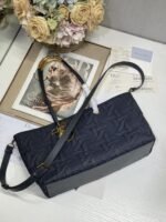 This Dior Toujours handbag made a brilliant debut in the 2023 Spring/Summer collection, with a unique and practical design that is both casual and practical Crafted with blue denim fabric and other materials, adorned with graphic rattan patterns, this stylish 3D version reinterprets Dior’s classic patterns, showcasing modern charm. The spacious interior compartment can neatly store various daily items, and the stiff top handle is paired with vintage metal decoration to enhance style and make it easy to carry Paired with adjustable leather shoulder straps
