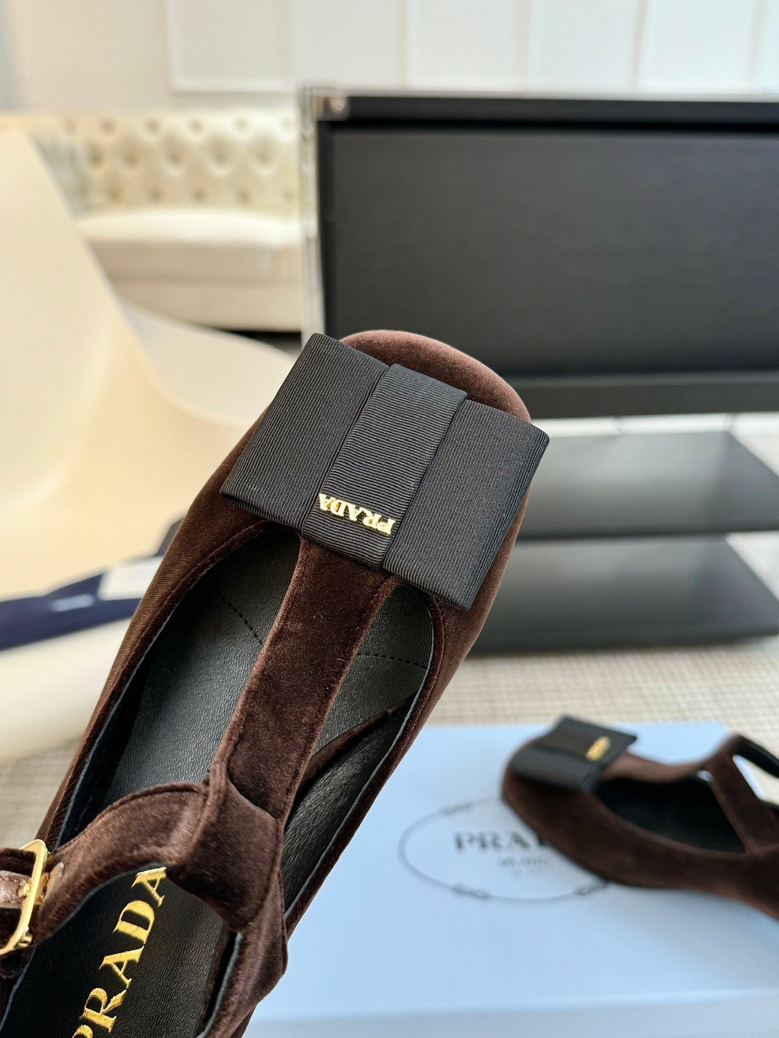 Prad * Prada 25 year early spring new style rough shoes women’s shoes round bow Mary Jane