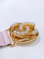 Chanel 24c rhinestone pearl logo buckle brass metal imported sheepskin plain weave with logo letters soft and delicate touch 3.0cm
