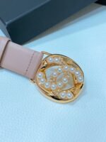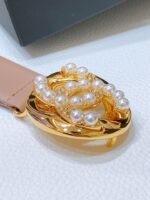 Chanel 24c rhinestone pearl logo buckle brass metal imported sheepskin plain weave with logo letters soft and delicate touch 3.0cm