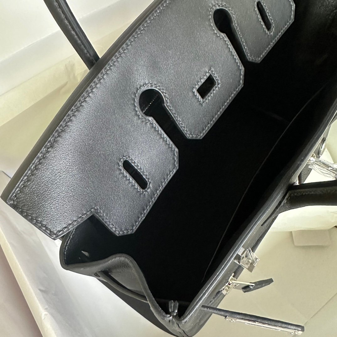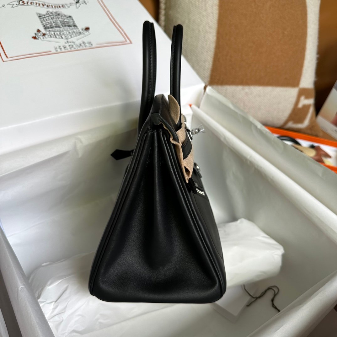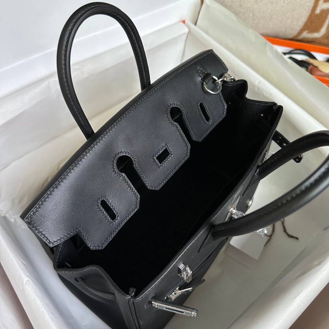 Birkin 25cm Rock Black Swift Silver Buckle Fully Hand sewn