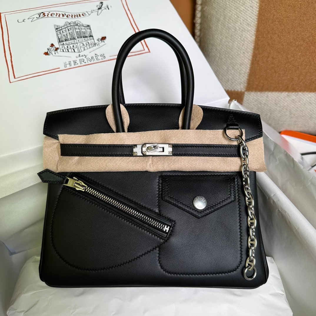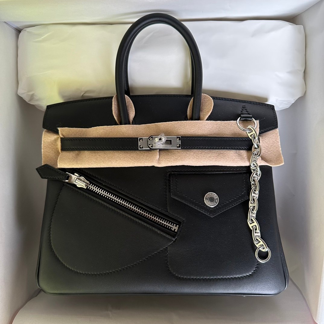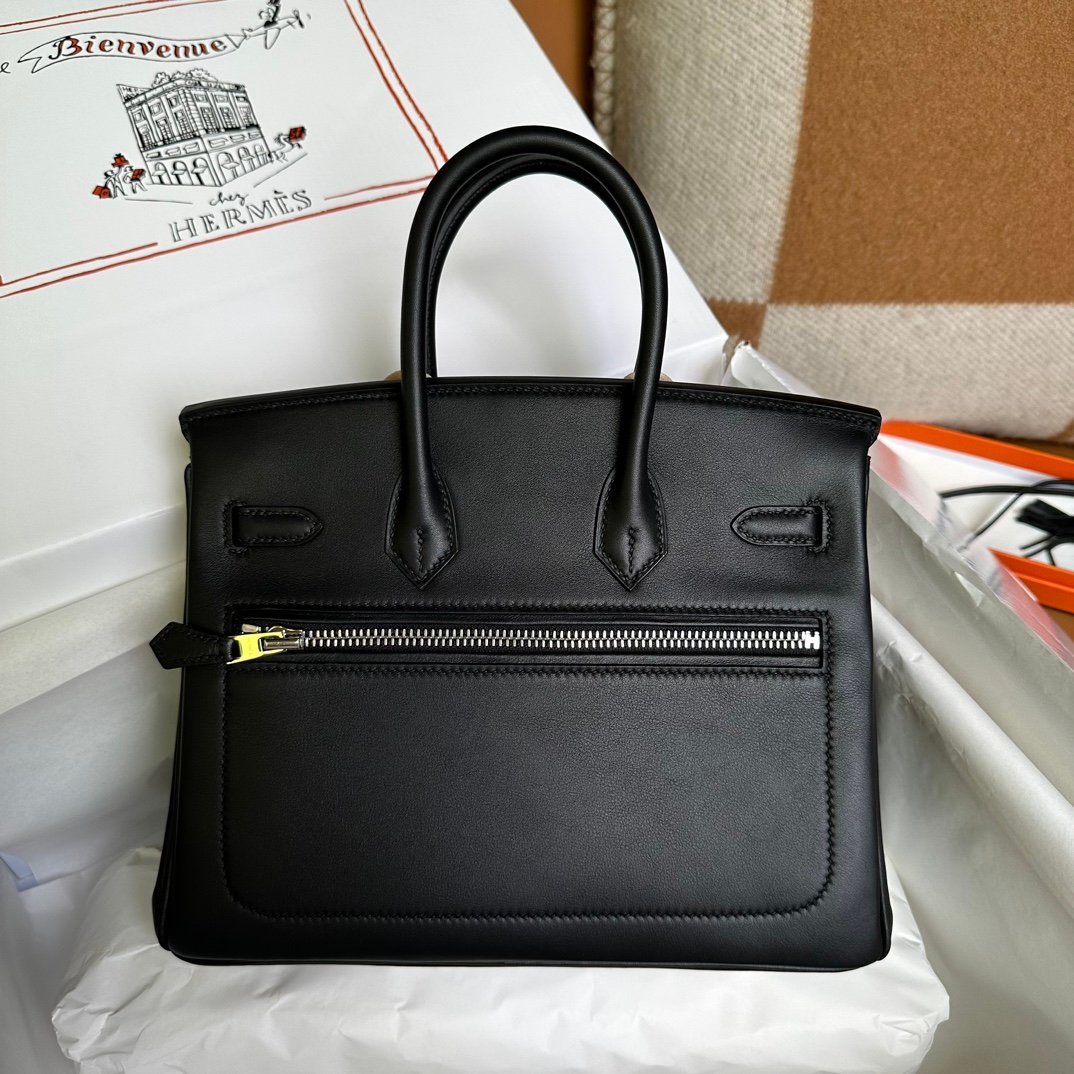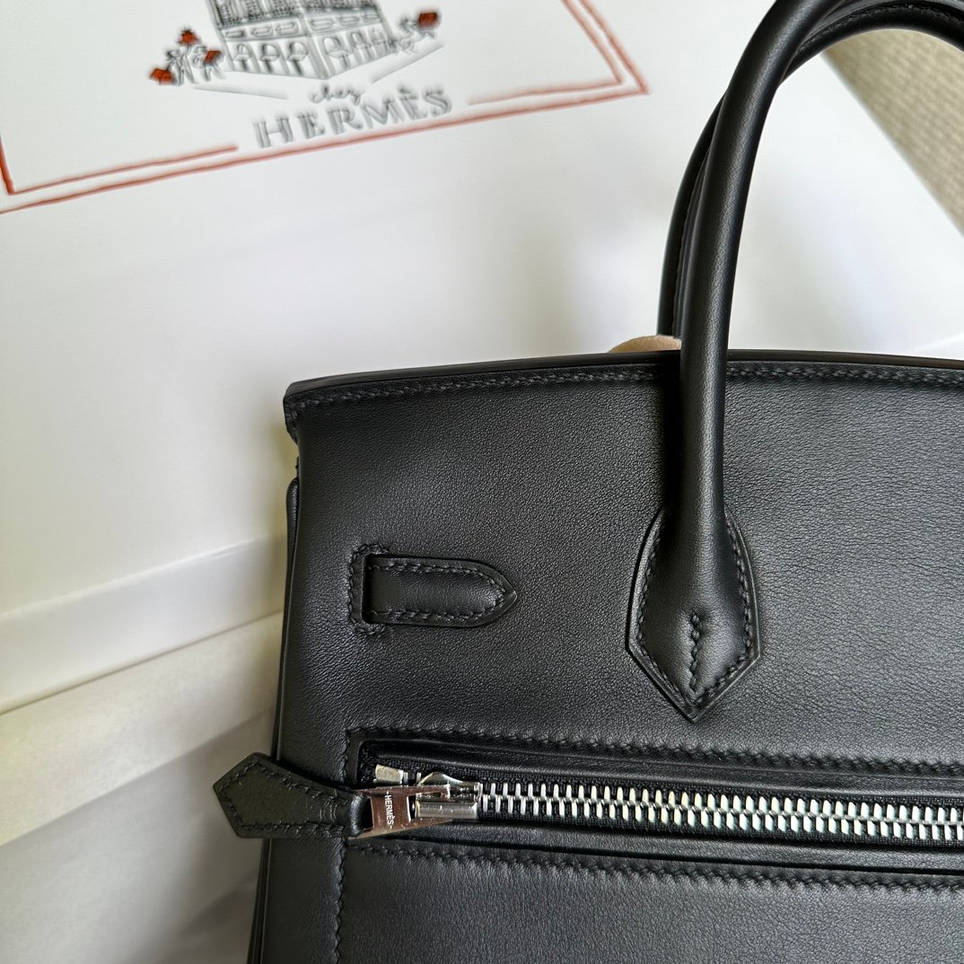 Birkin 25cm Rock Black Swift Silver Buckle Fully Hand sewn