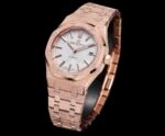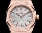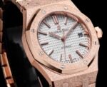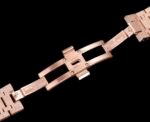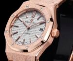 The AP Royal Oak Frost Gold version women’s 37 size 15454 series 3120 (Frost Gold customized version) has a small quantity, and the most important part of the steel strap watch is the original strap mold, which makes the strap delicate and brushed without sharp cuts. The thickness and joints of the strap are consistent with the original, and the details are meticulous The adjustable buffer design at the head of the watch strap, which is consistent with the genuine product, makes it more comfortable to wear close to the wrist. The switch design and texture of the watch buckle, as well as the carving process of the buckle, are consistent with the genuine product. The original literal workmanship and color details are restored without any flaws when placed together with the genuine product. The movement is the soul of the entire watch and the key to distinguishing authenticity. It perfectly replicates the original 3120 movement, with precise timekeeping and solid center axis for the detail pointer, which is consistent with the original. The pointer is polished to ensure that the pointer has no burrs
